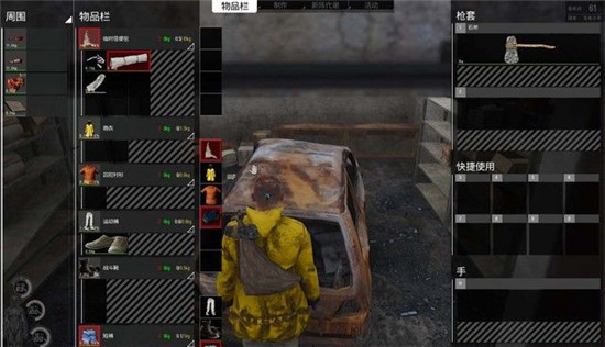 搜刮之后也能得到僵尸身上的装备,例如,这个僵尸的战斗靴不错,雨衣也挺酷的,