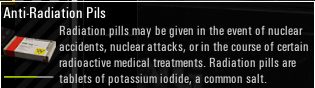 抗辐射药可以在核事故,核弹攻击,或者在某些放射治疗之后使用。抗辐射药是一种常见盐——碘化钾制成的药片。
