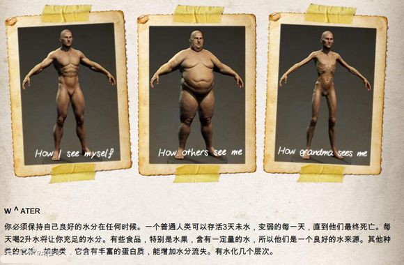 你必须保持自己良好的水分在任何时候。一个普通人类可以存活3天未水,变弱的每一天,直到他们最终死亡。每天喝2升水将让你充足的水分。有些食品,特别是水果,含有一定量的水,所以他们是一个良好的水来源。其他种类的食物,如肉类,它含有丰富的蛋白质,能增加水分流失。有水化几个层次。