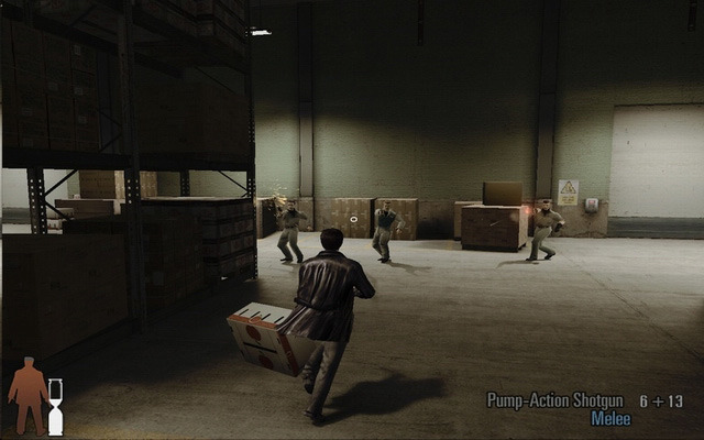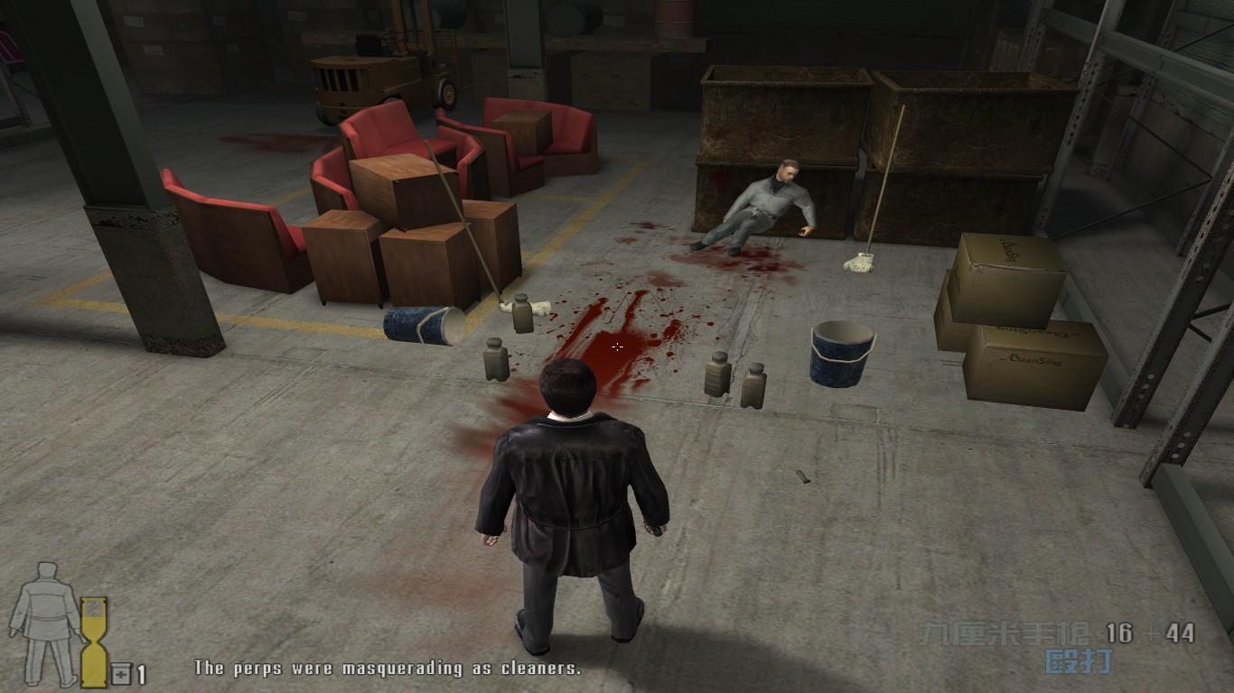 MAX坐车到一仓库,下车听到楼上枪声,穿过右边一铁门直走,从尽头的门进入仓库听到女人哭泣声,进去一看,原来是电视发出的声音,一场虚惊!但MAX感觉不对,继续搜索。一名保安忽然出现在前面的门,MAX上前盘问并押着他往里走,保安打开一道拉闸门,MAX进去搜索,忽然保安拔枪向MAX射击,与此同时又出现另一个保安,MAX敏捷地干掉他们,穿过高高的货架,走到仓库左尽头打开一扇门,进去干掉两个保安,打开左边一道门进去直到一个楼梯间,沿楼梯杀上去,到楼顶进入里面的房间,注意搜索墙壁上的绿柜和保险柜,可以得到弹药和血剂。(以后每关都注意搜索柜子,会有以外的收获!) 在最里面的房间听到说话声,MAX透过门缝,看到一女人被两个保安逼讯,在MAX杀入的同时,女子被保安枪杀,解决掉保安后出门,又遭遇一帮保安,杀!几个保安在撤退的时候,女主角娜出现了。她解决掉了那几个保安,MAX想走电梯与娜会合,但电梯门打不开,从另一个门出去到一高架上,干掉楼下保安,前面的门也打不开,折回到原来的电梯口,看到电梯门已经打开了,坐电梯到楼下后,一路往前走,干掉沿途的敌人,追到仓库外,敌人头目还是坐车跑了,此时警察也到了……