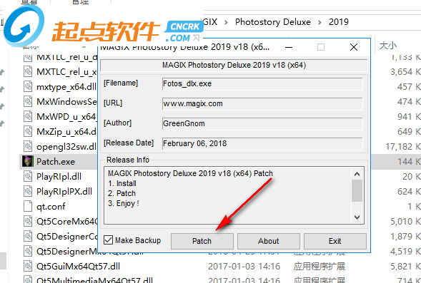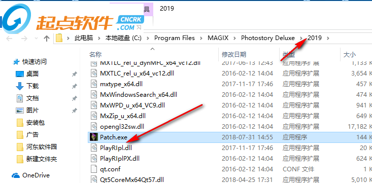 如图所示,复制的地址是C:\Program Files\MAGIX\Photostory Deluxe\2019,启动Patch.exe