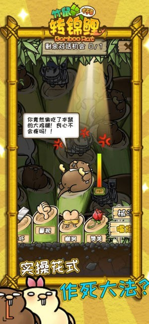 竹鼠才不要转锦鲤游戏操作很简单,玩家只需点点点,就可以让竹鼠跳火锅、落地成盒、洗马桶……等一系列魔鬼试炼,从而刺激另一只竹鼠进化。变性什么的都是小事。