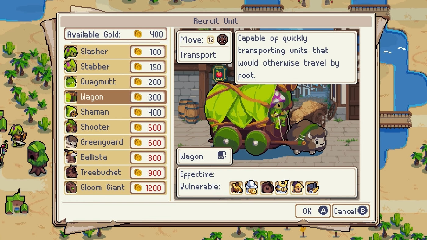 战律Wargroove募兵系统相当于“《大战争》系列”的武器生产,不同的兵种招募的金钱数也不同。预告片和公布图片中可以看到陆战有如下兵种: