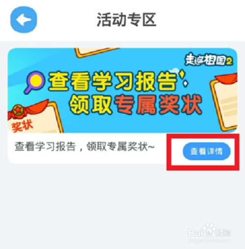7、再回到手机,点“一起作业”右顶部的小礼物盒图样,点此进去看下“学习报告”,能得一份专属奖状哦。