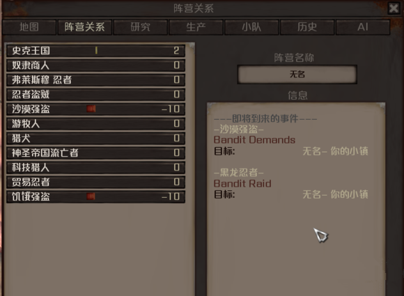 打开阵营关系,即将到来的事件可看到有谁在向我们靠近,以及倒计时