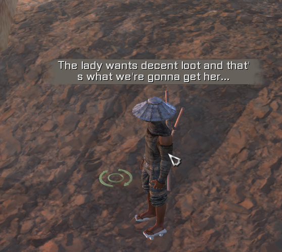 野外危险重重,好在NPC眼尖,老远看到了一伙沙漠强盗,他只得远远潜行着