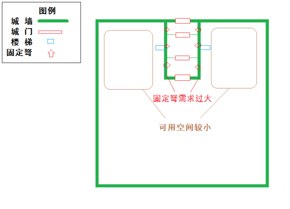 凸城虽然不占用城内空间,有向外发展空间,但是无法发挥固定弩作用,且外城门难以支援