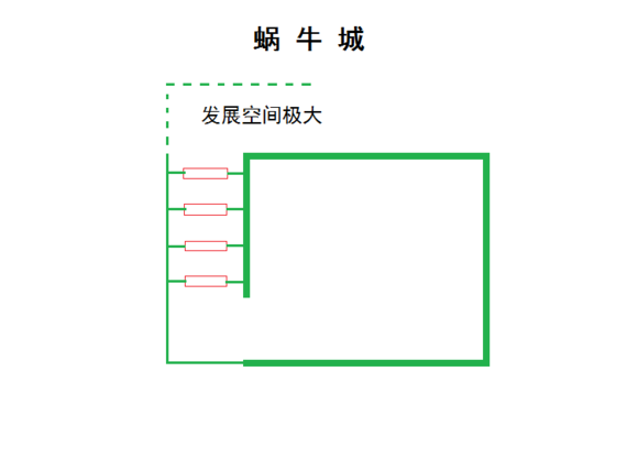 然后就是蜗牛城,注重单侧活力,瓮城发展空间也大