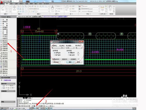 7、如图操作,先点击左边工具栏的坐标标注~在底下任务栏中输入命令S,就会弹出坐标标注的单位设置,将单位设置成M就可以。