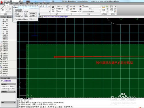 10、上一步完成后,鼠标放到工作区中,按住鼠标左键从右往左拖动需要点坐标的区域。