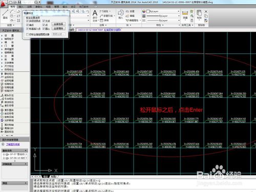 11、松开鼠标之后,回车键,在被你选中的交叉点的所有地方都会出现坐标,完成了。