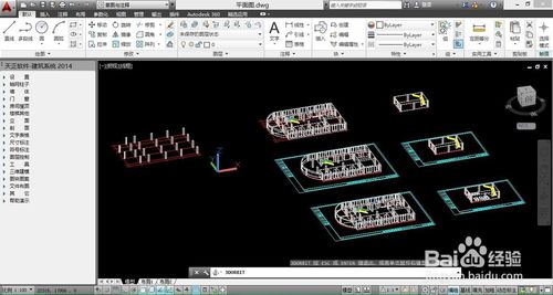 在CAD命令栏中输入命令”3DORBIT“,然后按回车,就可以自由旋转,可以看到我们用天正建筑2014做的图直接是三维的,如图: