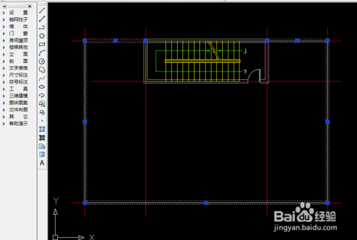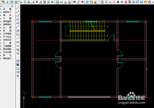 删除顶层没有的墙体、轴线、门、窗,删除完成后,如下图所示