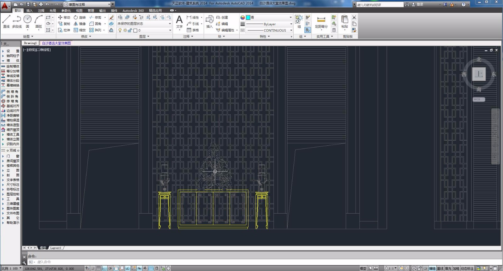 4、天正建筑2014支持一套工程平面图纸保存在一个dwG中,可与其他独立图纸DWG文件组合,生成立剖面与三维建筑模型;