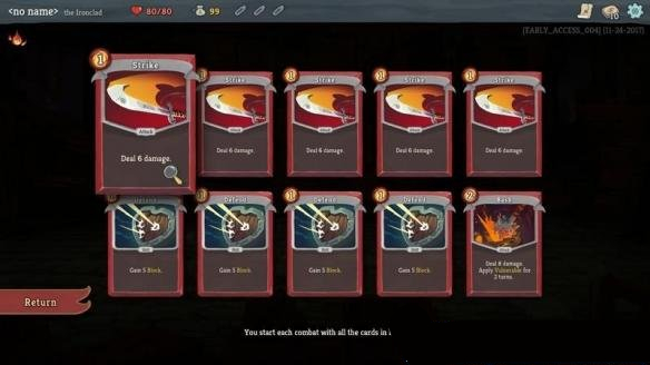 初期,能够同时造成伤害并增加防御的卡牌特别好用。在防御的基础上进行攻击是比较好的选择。