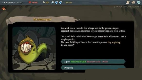 同意:获得175金币但是获得疑虑诅咒。