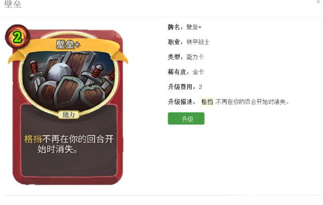 防战的核心牌有壁垒、全身撞击、巩固,其中壁垒是最重要的,如果你在一层拿不到壁垒的话,那小编还是劝你别走防战了。壁垒是一张3费的能力卡,升级后是2费,效果是护甲值在回合结束后不会消失,这个能力对于不是防战流派的战士是一张废卡,因为除了防战其他的战士都不容易堆护甲,所以这是一张防战专用的能力卡。