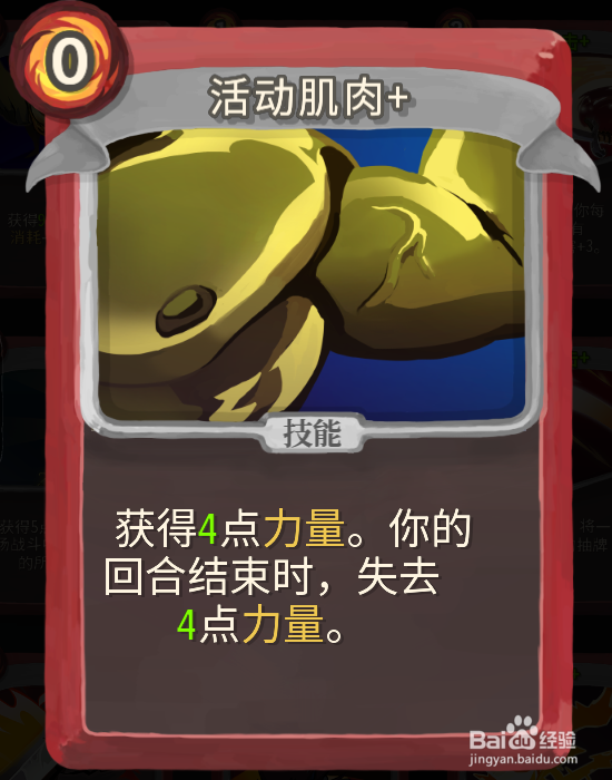 必备卡牌【活动肌肉】0费的神卡,加成本回合所有的攻击卡牌。4点力量的加成能让所有的攻击牌每次伤害都提升4点伤害。注意旋风斩是按照费来打次数的,就是20点伤害的话是打5伤害X4段的,而不是直接20点伤害。而如果加成了活动肌肉的旋风斩是9伤害X4段,加成就不是24点了,而是36点,足足提升了50%的伤害有没有。