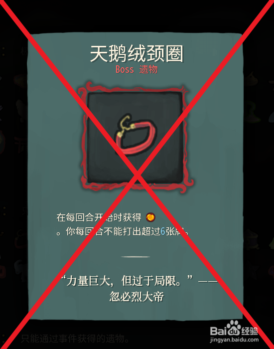 很多朋友在BOSS遗物选择的时候看到尽管3个遗物都带负面效果,其他两个的负面效果要么是无法看到怪物意图,要么就是无法获得药水。总感觉这个的负面效果小就选择了这个,因为每回合我们光加成力量,削弱敌人,加成费都会超过6张卡以上,而这个卡的负面效果是每个回合不能超过6张卡。