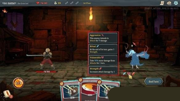 因此,基本的战斗方式就是利用减益卡牌削弱敌人-利用攻击卡牌打击敌人-利用防御卡牌和增益卡牌保护自己。