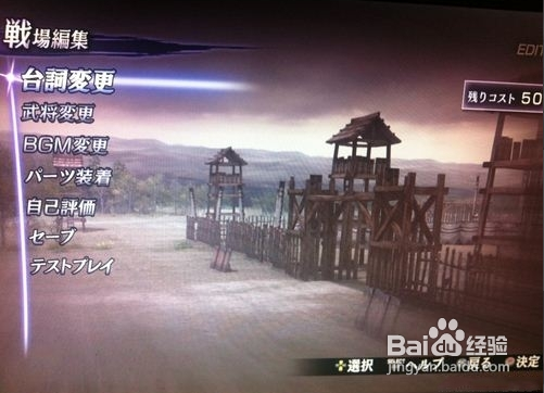 战场编辑:编辑模式,包括变更台词、地图内武将变更、战场BGM变更、自我评价以及存档