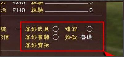 嗜好分为 喜好武具 喜好宝物 嗜酒,影响赠送名品所上升的好感。如果是赠送符合嗜好的名品,该武将 好感 会变成感情状态。