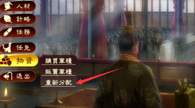 然后可以选择买进粮食,贩卖粮食和重新分配,我们选择重新分配。