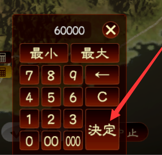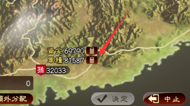 之后找到一个都市钱粮比较多的,点一下钱粮旁边的计算器,输入一个数值,这个数值是给这个都市留下的钱粮。