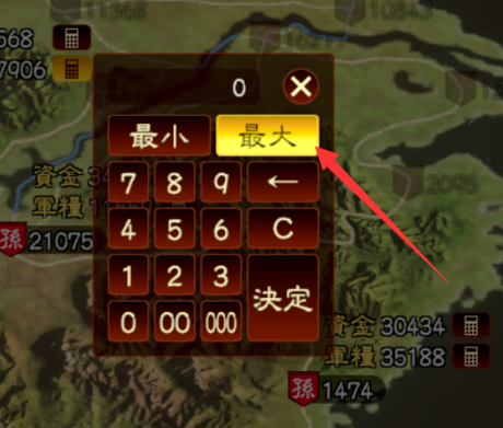 然后再找到要输送的目的地,点击钱粮后面的计算器,可以直接点击最大,就能把之前都市多出来的粮食全部都运输到这个都市了。