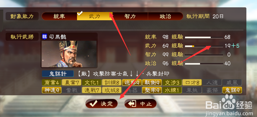 威名“良将”的擅长使用私人部队,使用“教练”技能在没有任务状的时候训练都市的军队,在有任务后活用“教练”技能,能抢先其他势力下手,尽快出动。
