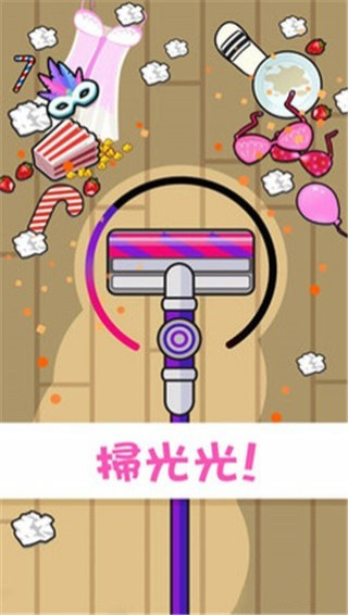 清理房间,收拾心情~清洁怪物手游超简单,超爽快的舒压小游戏:启动你的吸尘器,左右移动吸尘器尽可能多地清理地板上的所有物品。