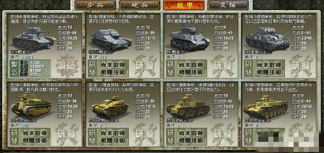 然后重点开始培养一支精锐去处理我们的后方的被日寇占领的广州香港,初期日寇在广州有3支步枪兵,13支轻机枪兵,两支迫击炮队,2支精锐部队,九六式榴弹炮,九四式轻装甲车,M25装甲车各一队,指挥车,补给车各两队总共3W人,香港的部队已经被调到广州了,所以是个空城但是我们够不到,这里看对面主要还是以步兵为主,当然我们前期也是大量的步兵,我们把之前就拥有的大刀队改成战斗工兵,留下几只大刀兵就行了。衡阳桂林的部队调集到曲江,昆仑关和南宁部队调到苍梧,前期军购买我们造不了的部队,坦克中cv-33轻战车小编不怎么看好,伤害不行防御又不高,尽量就是T-26轻战车,这个在我们在和俄国的外交里就可以获得,不过这个是看脸的,在我们的大后方城市建造兵营兵工厂和弹药厂,重庆可以考虑不建,因为重庆会经常早上日本飞机的轰炸,建筑的损失很大,武器上,前期造卅节式重机枪,三一式迫击炮、卜福斯山炮和工兵装备。