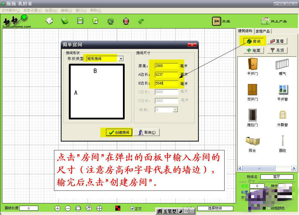 房间尺寸: 房高:2800 A边长:6237 B边长5548