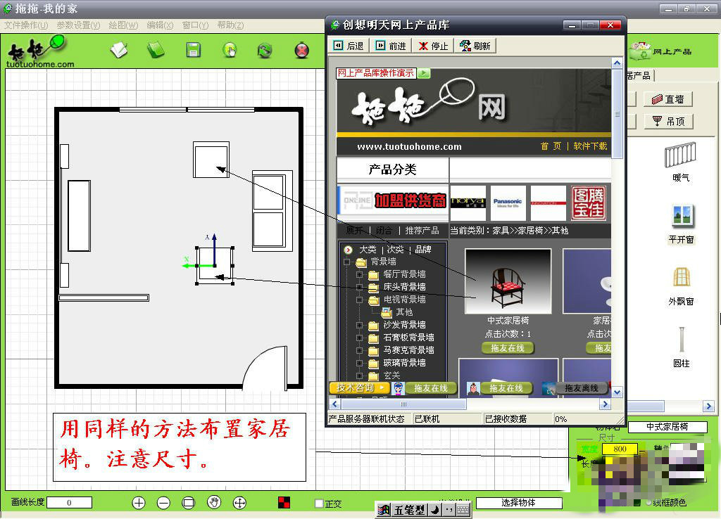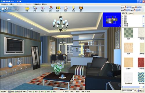 大量3D样板方案和产品图库:提供本地和网上两种方式的3D样板房和产品模型及材料库, 用户也可以录入自己的样板方案和家居产品到本地。
