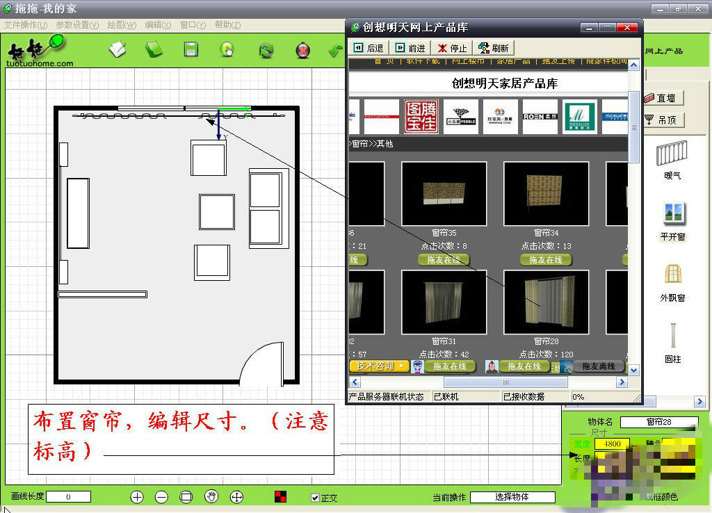 布置窗帘(注意标高,标高是指物体的离地距离)