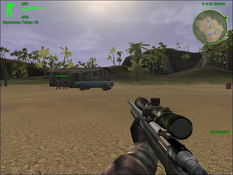 M16——点射枪。带榴弹,无瞄准镜,射程约400米。可用于中近距离点射和中距离轰炸,适合打开放性目标。该枪有3发点射、单发点射和榴弹3种进攻方式,用数字3键转换。