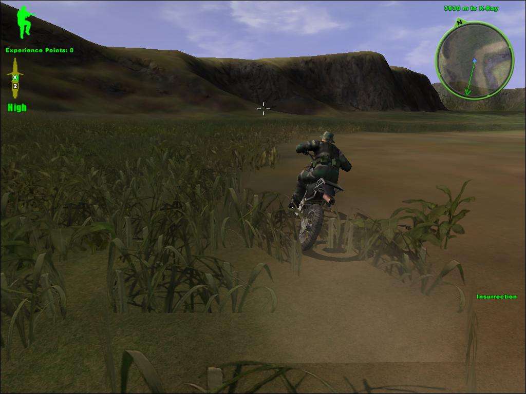 农田村庄战。乘坐队友的车子冲向敌基地,主角负责控制炮火,路上小兵尽量杀,碰到吉普要打掉,否则对方会干掉你。到达目的地后,队友向前冲,主角最好殿后,清扫后方的敌援军。清扫好了,队友在前面也打完了,穿过一片罂粟地,路上清理掉两边房子,进入村庄,把2间房子里的毒品箱用枪打爆。最后向直升机接送点冲去,把接送点的敌人清掉。本关主要是炮火不好控制,枪支可以随意,难度2星。