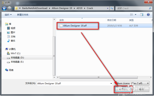 找到解压后的文件夹,打开里面的【Crack】文件夹,选择文件Altium Designer 19,然后点击【打开】。