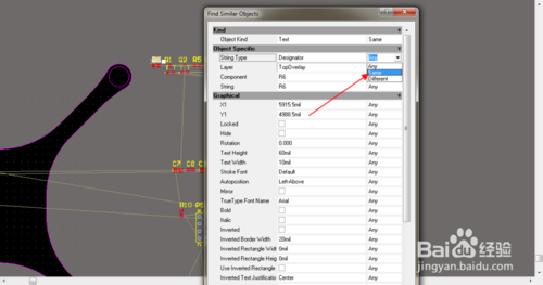 接下来出现一个属性配置窗口,选择字符串的属性,并将后边的any改为same,即搜寻相似格式的字符串。