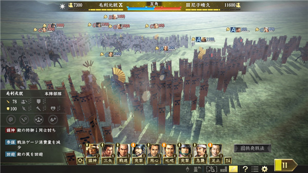 在本作中,决战可以切换“即时制”,除了追加、更新战法之外,本作中追加可影响战况的3种新要素“军设施”、“陷阱”、“辅佐效果”。