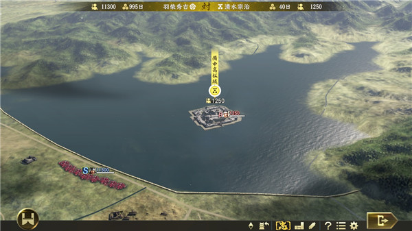 “水攻”仅可于一部分平城发动,虽然需花费较多时间才能攻陷城池,但可以毫发无伤地俘虏敌方全部的武将及士兵。