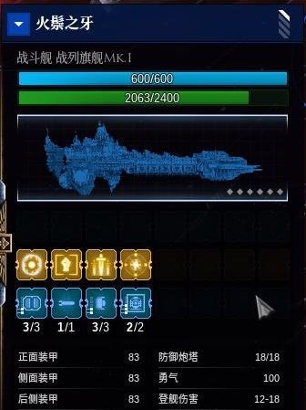 其中上排图标是舰船的基本属性,这个我们后续舰船详解里会有说明。