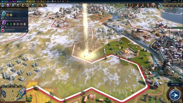 该特色能力使加拿大能在冻土地貌上建造农场,并使雪地和冻土单元格的购买费用减半,研究土木工程后还可以将农场建在冻土丘陵上从雪地和冻土单元格开采资源时产量(例如:铁)为通常的两倍。
