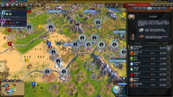 4.最后就是狂涨文化值,最后一个未来市政每次完成都会给50点的外交支持。