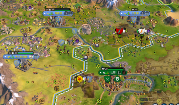 先说这把,前期有个军邦撑着我三城开然后被印尼毙了。其他城邦不管首发不首发都相继变成了别人的形状,只有左下角一个马斯科特苟活住,没发挥太多用处。