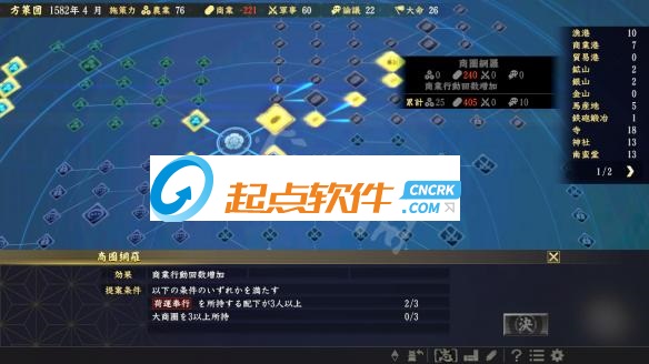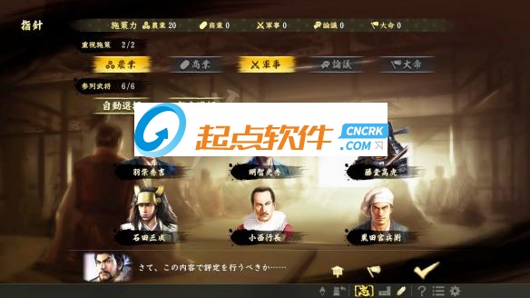 在获取发动大命所需之“施策力”的“评定”中,玩家可自由选择重视的系统以及列席评定的武将。此外,游戏开始后也将显示出所有可实行的“方策”,能计划性地强化自身势力。