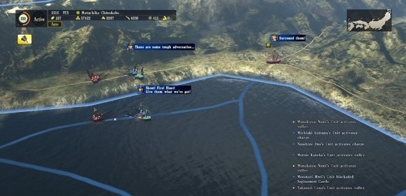 所以下一个剧本,就选1582剧本中的北条家,把关东统一了。开局还是全委任,兵发两路打武田和里见,这时候真田和佐竹会去吞并其他小势力,完全没有后顾之忧。灭了武田和里见,等一次收成,大概是9月份,兵粮差不多有五万。带一路兵,总兵力约18000,共九队每队2000.足够灭真田了。