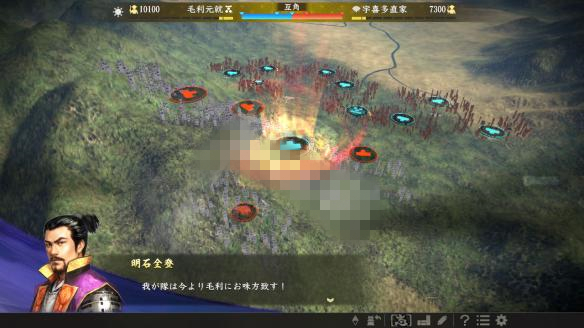 灭佐竹要费点劲,因为要打一场决战,决战还是全部部队直冲敌军总大将,这样战损比较大,不利于决战后攻城,所以要多带些兵,总兵力35000,佐竹大概能派20000兵出来决战,然后决战后各自战损12000左右。决战失败之后,佐竹不会再发起决战,各城兵力大概3000左右,逐个攻城,灭佐竹也很快了。佐竹一灭,灭剩下的小势力也就是很快的事情了,这个剧本按照这种方法通关大概要20分钟吧。