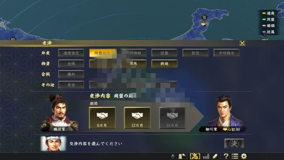 当玩家的势力成长到一定规模后,周围势力就会集结起来组成“包围网”企图打倒玩家。因此即使自身的势力已经扎好根基趋于安定,仍能感受到充满紧张感的战国体验。此外,本作中已结成同盟的势力,在同盟期限结束前可进行“延长同盟交涉”,来维持长期外交关系。