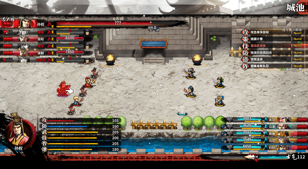 出城,走一格触发战斗,看见曹操暂时无敌的大军,都是5k+的血,残念。。。得到【锦囊】(可以暂时无敌2回合),撑过四回合,再逃离战斗,会获得造诣:霸主驾临。